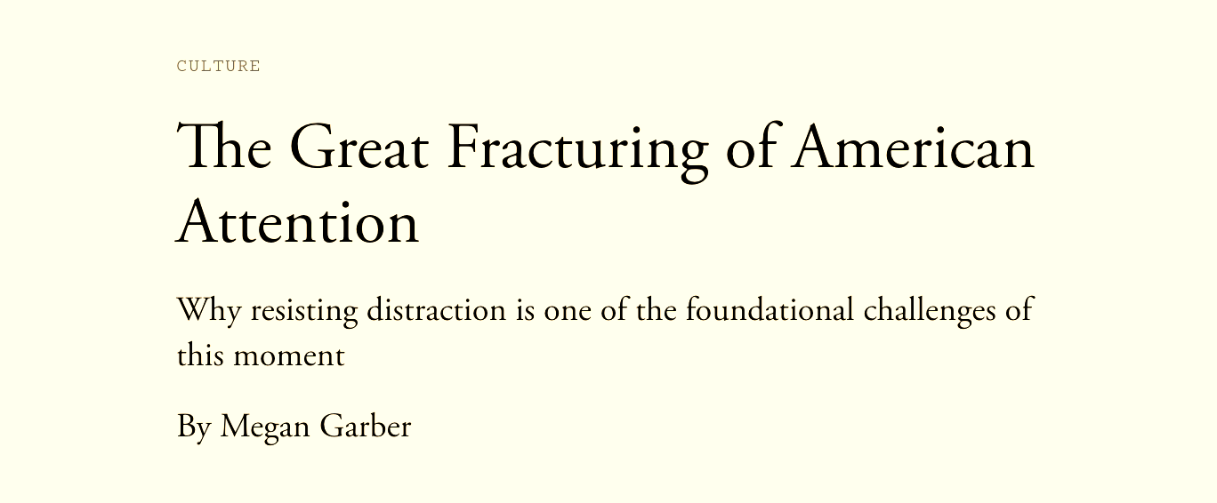 The unit of discourse isn’t the insight but the narrative container. You encounter “the attention crisis” as a total package — the premise, the villain, the implication, the emotional response. You buy the whole franchise or you don’t.