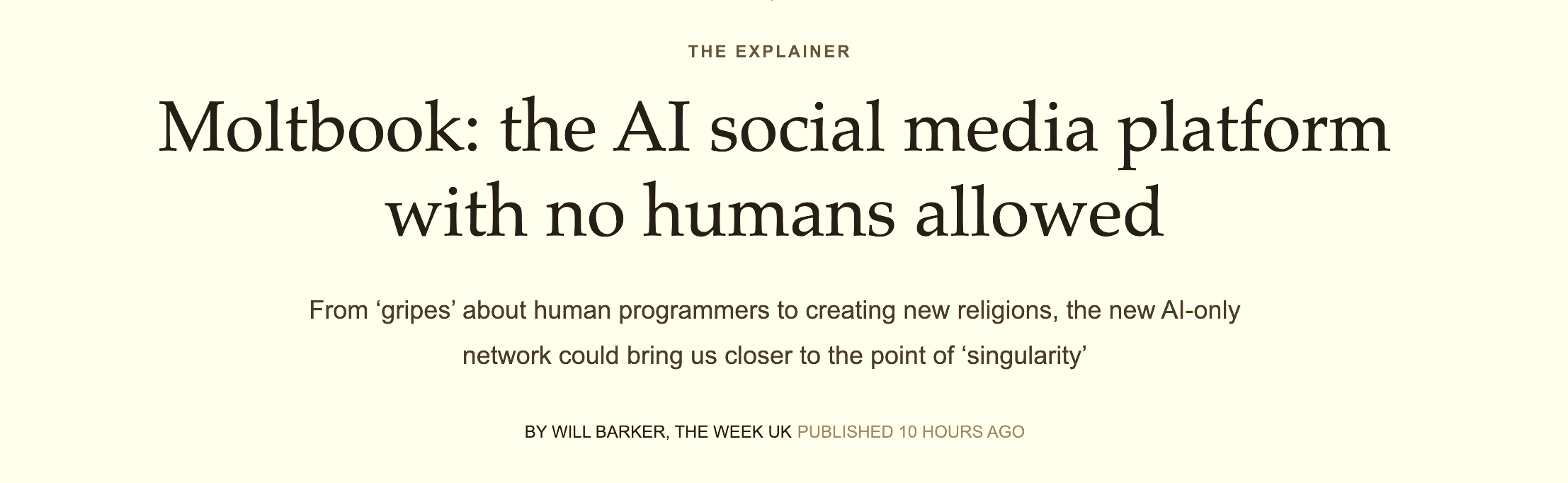 So many of these idea franchises are decline or crisis franchises — negative sentiment triggers that assign blame, induce panic, and ultimately get clicks. There are the tech panic franchises, culture war franchises, and macroeconomy franchises. The inverse exists too: hype franchises. The AI hype franchise treats every demo as proof of imminent superintelligence. It treats a pandering-to-tech-culture “AI agent social network” toy site as the next sign of “the takeoff.”