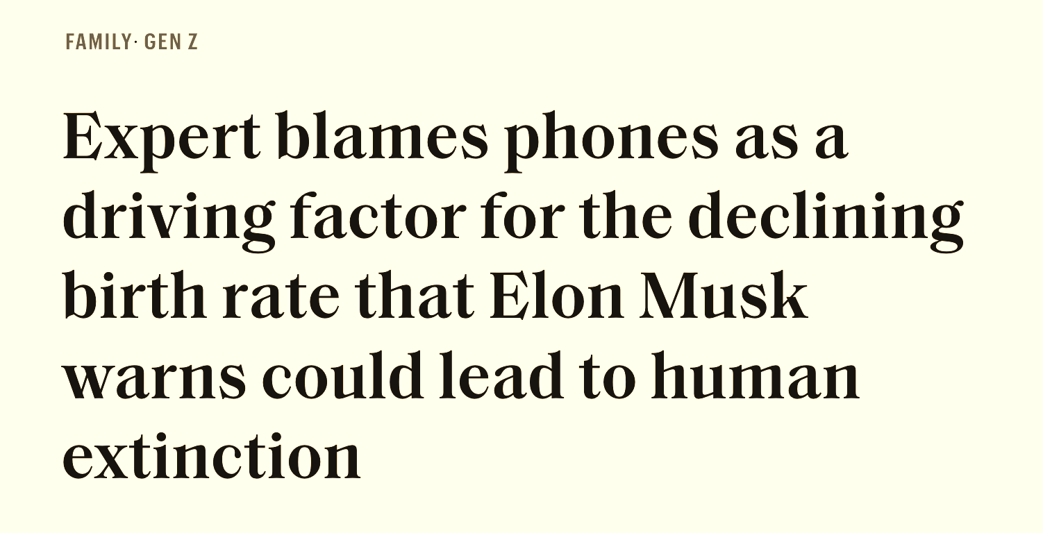 The scapegoat of the century is “phones” — and it checks all three boxes. Teen anxiety, loneliness, short attention spans, low fertility rates, political polarization. I’m not saying phones are innocent — technology undeniably drives culture. But true causation is specific and contextual. Franchise thinking has no use for this.